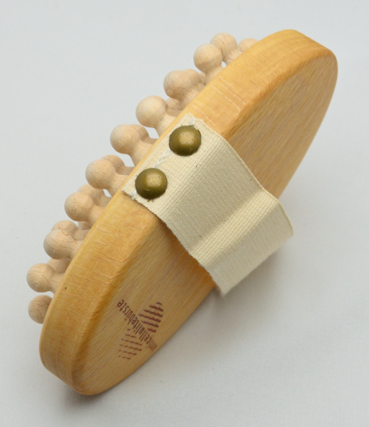 Pneumatisches Kissen mit 38 echten Holznoppen in Buchenholz mit Halteband.- Buchenholz, geölt