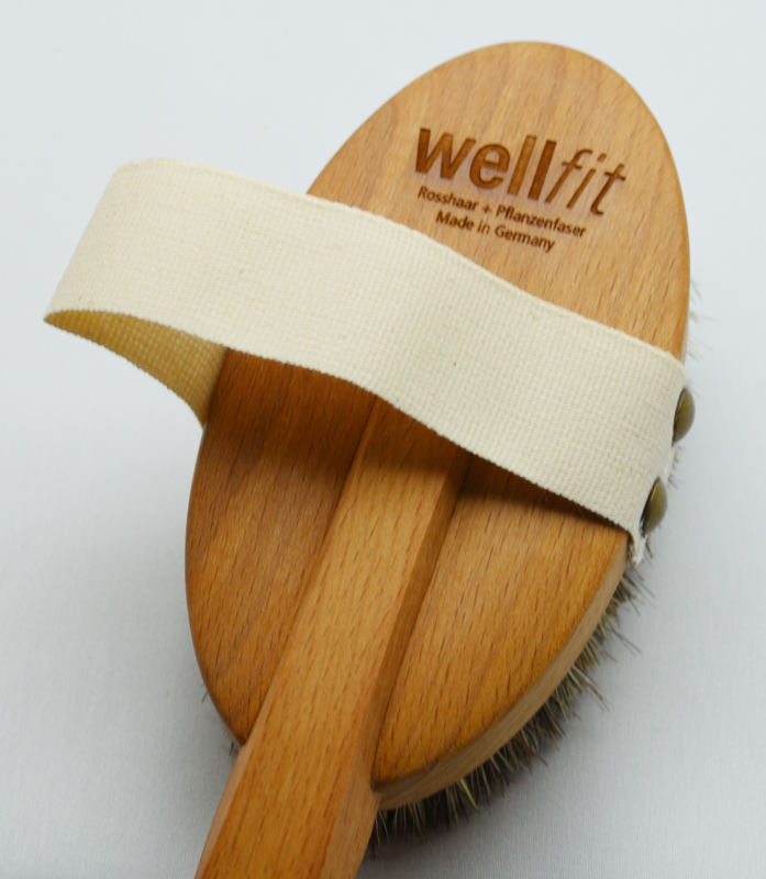 Erleben Sie ein völlig neues Wellnessgefühl mit der Wellfit Bürste. Die angenehme Mischung aus weichem Rosshaar und kräftiger Pflanzenfaser bietet eine wunderbare Massagewirkung.Die Haut wird auf natürliche Art und Weise gestrafft. Das Trockenbürsten (sogenanntes Bürstenbad) ist eine sehr effektive und natürliche Methode zur Gesunderhaltung und Stabilisierung des Kreislaufs. Das Herz öwird mit sauerstoffangereichertem Blut versorgt und das gesamte Nervensystem wird gestärkt, der Stoffwechsel angeregt.