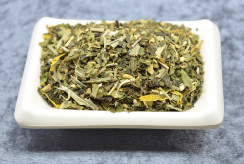 Zutaten: Grüner Tee (41 %), Ingwer, Brennnesselblätter, Lemongras, Zitronenverbene, grüne Mate, Moringablätter, schwarzer Tee Pu Erh, Schafgarbenkraut, Ringelblumenblütenblätter, Kornblumenblütenblätter