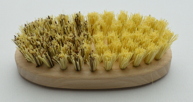 Diese Gemüsebürste hat zwei unterschiedliche Naturborsten.