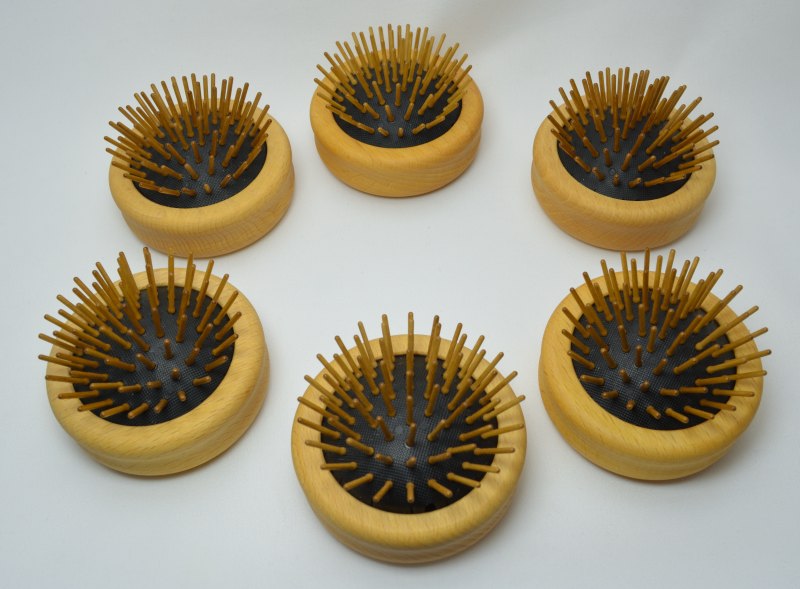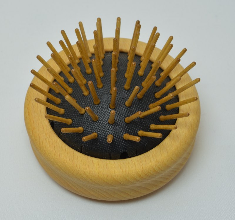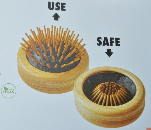 Einfach die Holzstifte ausklappen und die Haarbürste ist bereit zum Haare kämmen.