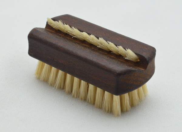 Diese kleine Handwaschbürste ist leicht und nimmt im Gepäck nicht viel Platz ein. Ein idealer Reisebegleiter. Die 5 Reihen mit 11 mm langen Naturborsten machen diese Bürste eher weich als hart. Eine zusätzliche Reihe mit 9 mm langen Naturborsten sorgen für eine gründliche Reinigung der Fingernägel. Durch die 2 mm kürzeren Borsten sind sie etwas härter für die Fingernagel Reinigung.