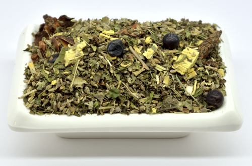 Zutaten: Fenchel süß*, Lemongras*, Ingwer*, Rosmarin*, Anissamen*, Honeybusch-Tee*, Kurkuma*, süße Brombeerblätter*, Zimt*, Rosenblütenblätter*, Stenanis* (2%), natürliches Aroma*.