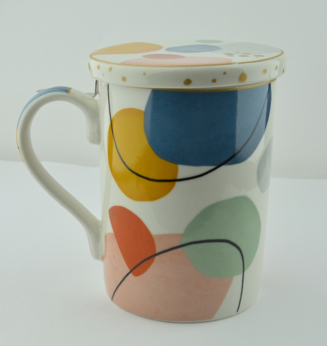 Porzellanbecher mit Deckel und Edelstahlsieb