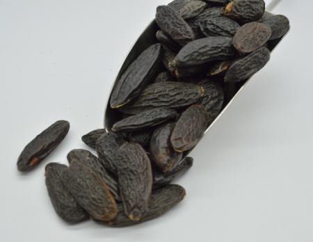 Ganze Bohnen.Die Tonkabohne hat eine Bittermandel- und Vanillenote und schmeckt charakteristisch süß und aromatisch. Generell lässt sie sich in jedem vanillehaltigen Rezept anstelle der Vanilleschote verwenden.